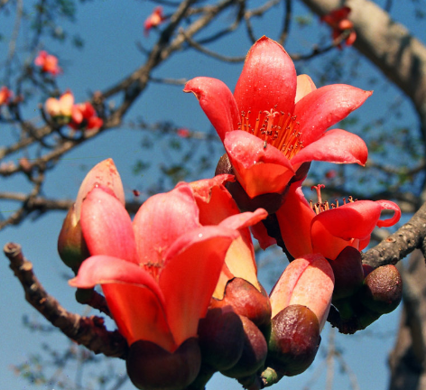 木棉外观多变化:春天时,一树橙红;夏天绿叶成荫;秋天枝叶萧瑟;冬天秃枝寒树,四季展现不同的风情。花桔红色,每年2~3月树叶落光后进入花期,然后长叶,树形具阳刚之美。