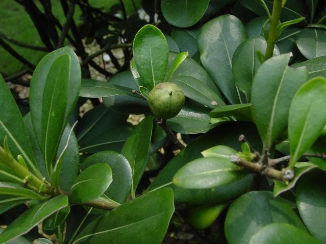 【形态特征】常绿灌木或小乔木,嫩枝被褐色毛。叶聚生枝端,革质,倒卵形或狭倒卵形,边缘全缘,先端圆或钝,基部楔形。近伞形花序生于枝顶,有短柔毛。花有香气,花瓣5,萼片5,雄蕊5,初开时白色,后变黄。子房密被短柔毛。蒴果近球形,果皮木质。种子暗红色。