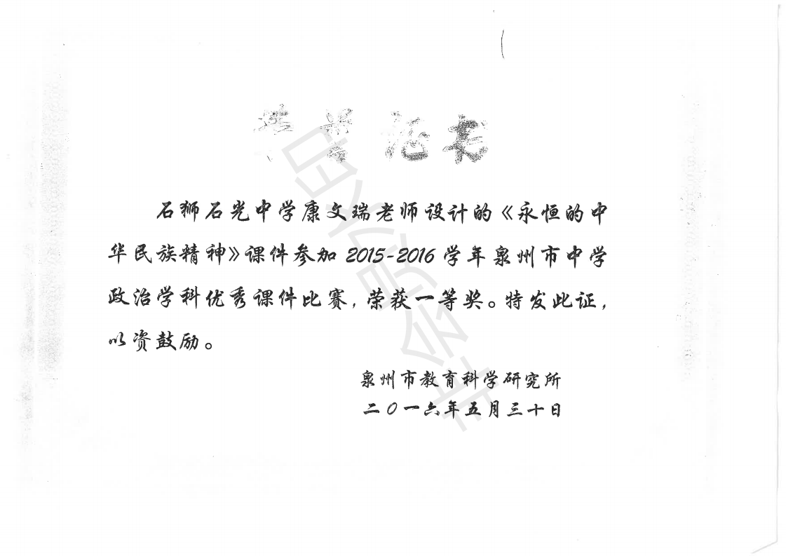 2017年泉州市高中政治学科命题一等奖 康文瑞 201710