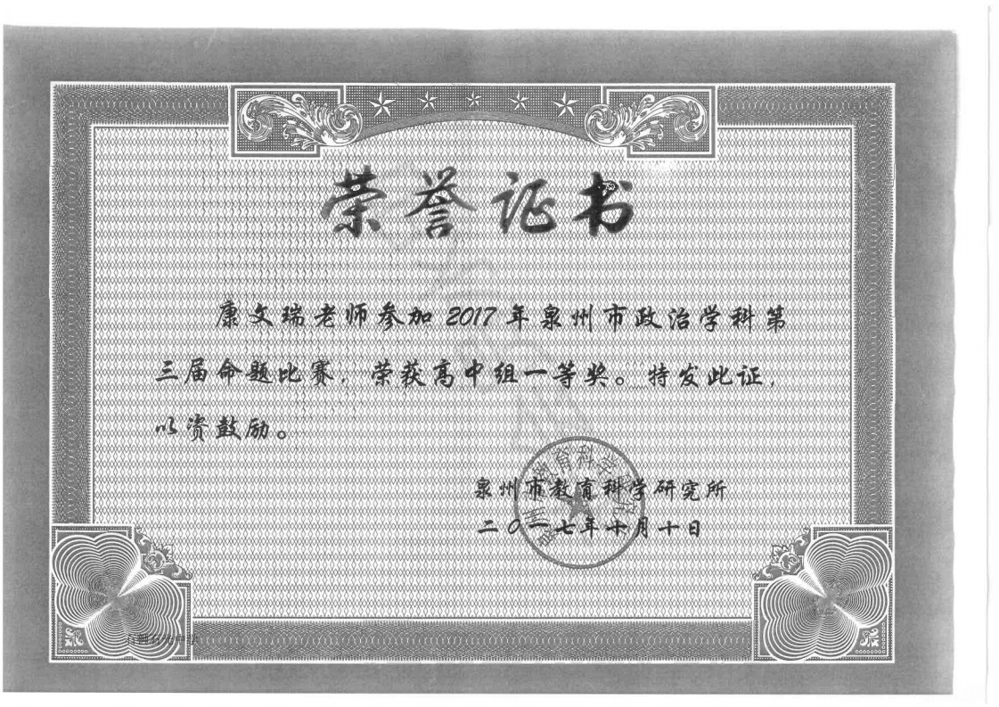 2017年泉州市高中政治学科命题一等奖 康文瑞 201710