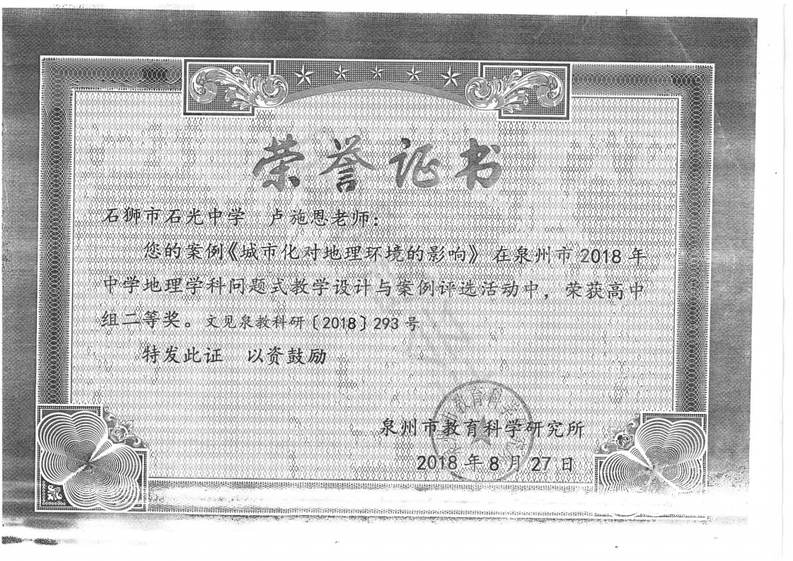 《城市化对地理环境的影响》获2018教学设计与案例评选高中二等奖 卢施恩 201808