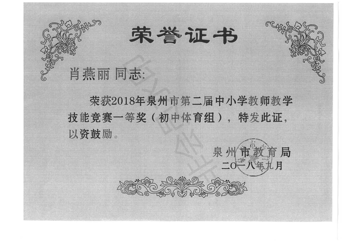 2018年福建省第四届中小学教师教学技能大赛初中体育学科三等奖 肖燕丽 201811