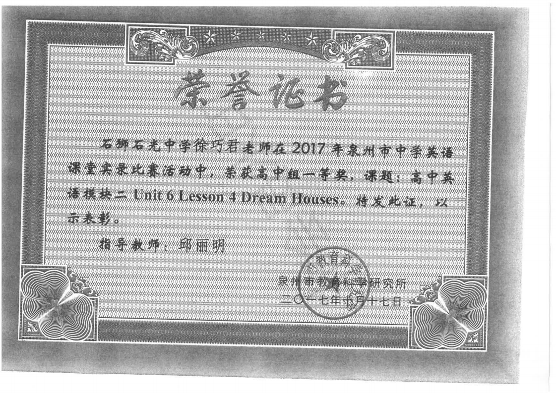 2017年《高中英语模块二Unit 6 Lesson 4 Dream Houses》泉州市英语课堂实录一等奖 徐巧君 201710