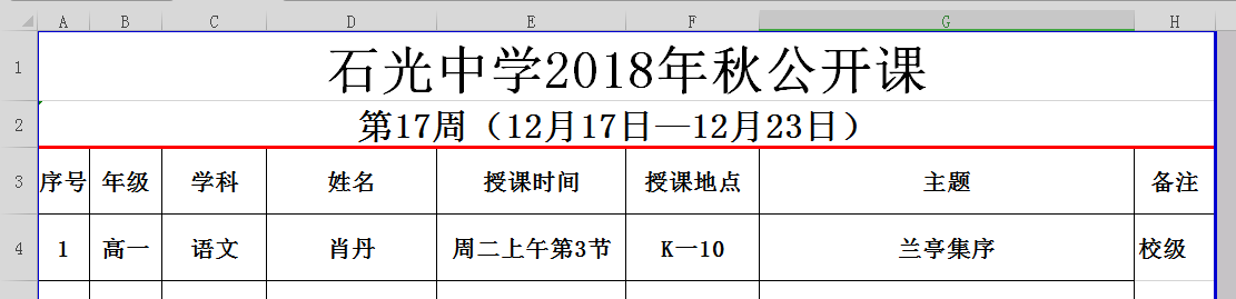 石光中学2018年秋公开课安排表(第16周)