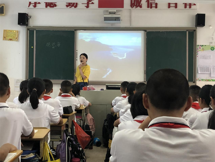 庄玉娟老师的《观沧海》,充分展示了新教师的较为扎实的语文教学基本功,以“海”意象去引导学生思考,强调解读“沧”字,从而激发学习探究文本的兴趣和激情,全堂环环相扣,内容完整而丰富。