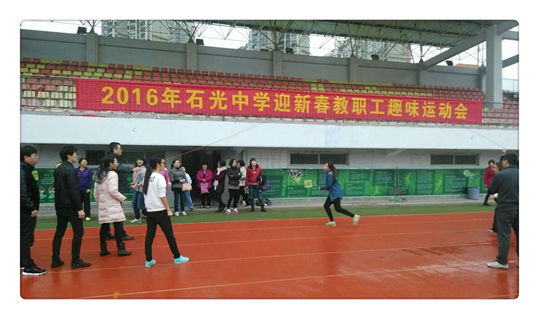 “宝盖山下新春乐,石光园中运动忙”,为了让教职员工们过一个热热闹闹的新年,以更饱满的热情投入到新一年的工作, 2016年1月11日下午,石光中学在田径场上举办迎新春教职工趣味运动会。