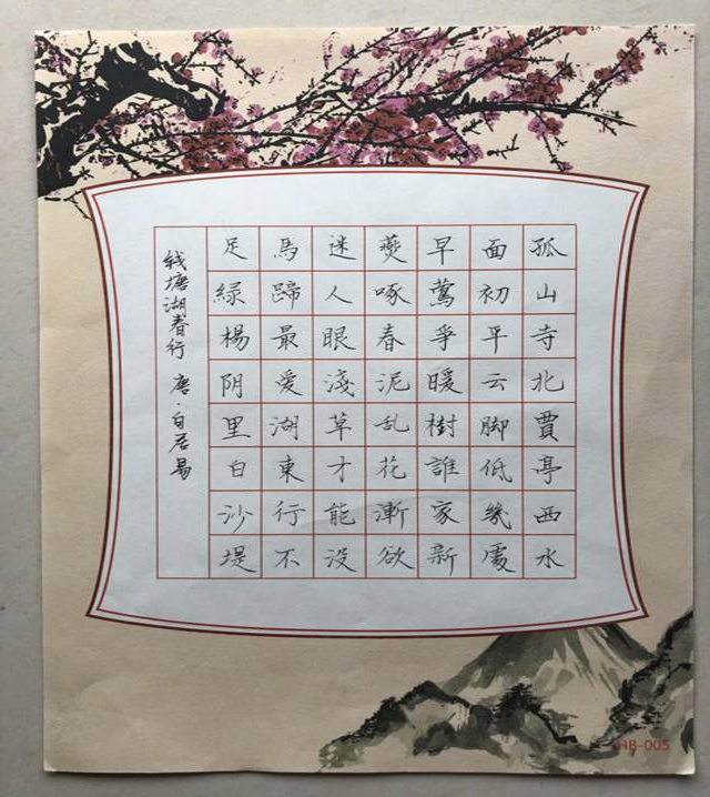 初一年段高度重视规范汉字书写,自开学以来,初一年学生利用晚自修时间进行书法训练。本次规范汉字书写比赛,既是校园文化艺术节的系列活动,也是对日常书法练习效果的一次检验。本次书写内容有《钱塘湖春行》、《送杜少府之任蜀州》、《鸟鸣涧》、《春夜洛城闻笛》四首诗供学生选择。