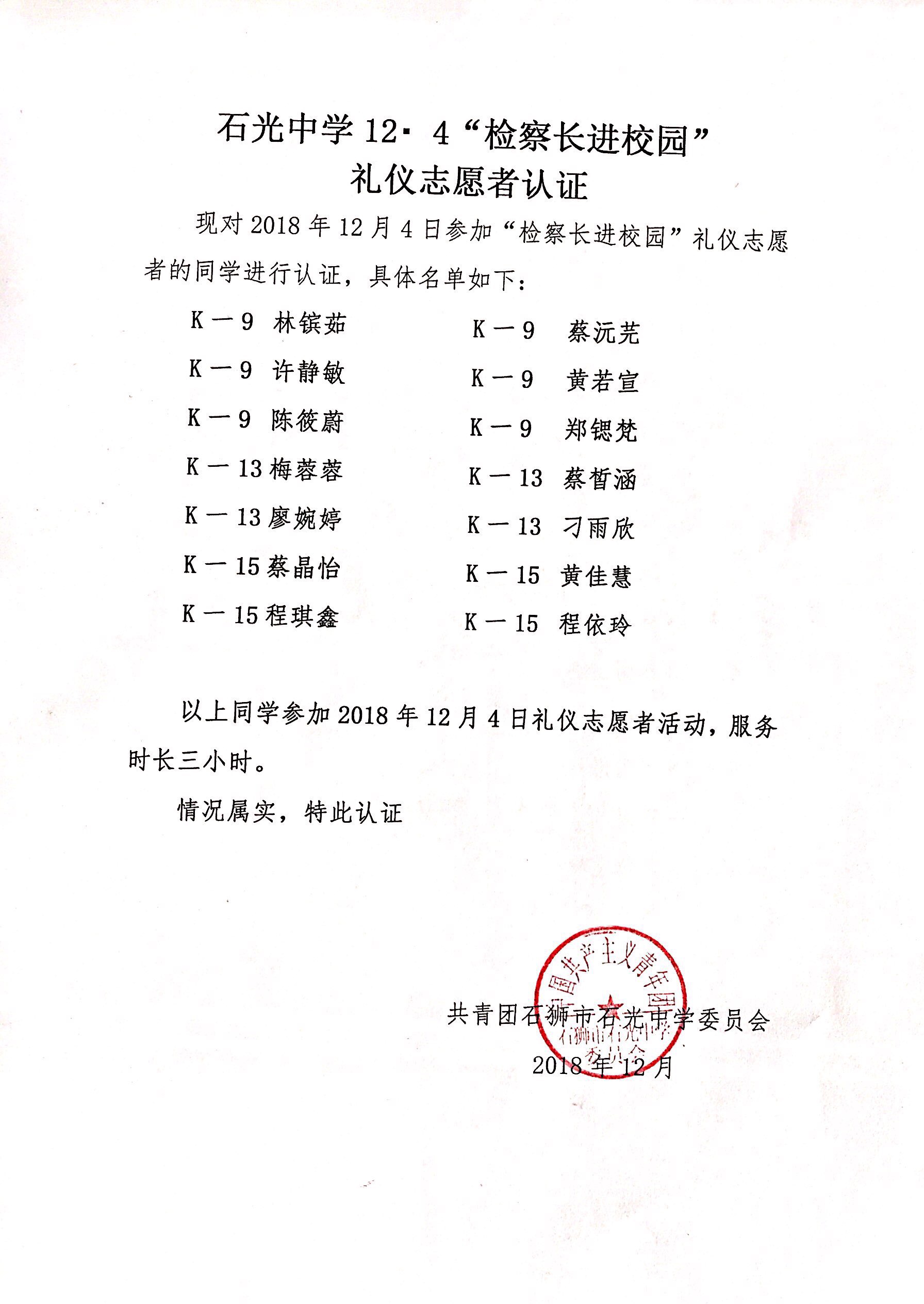 关于12.4“检察长进校园”礼仪志愿者活动认证通知