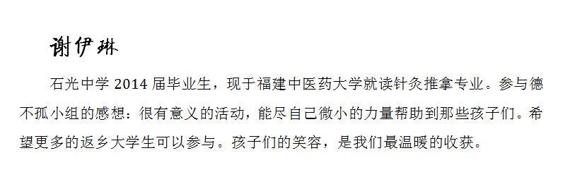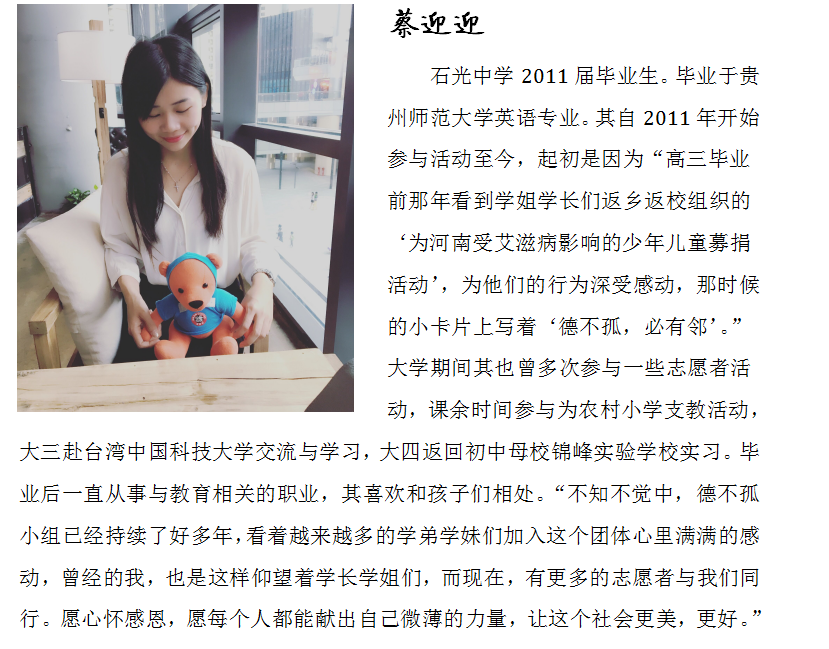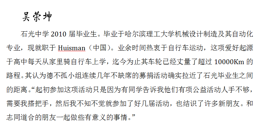 “德不孤小组”石光学子简介(部分)