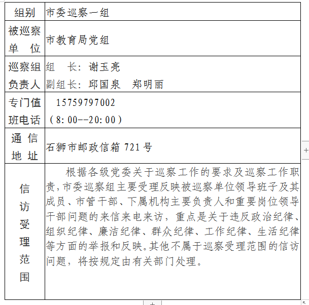 七届石狮市委第七轮第二批巡察第一巡察组进驻市教育局党组开展巡察