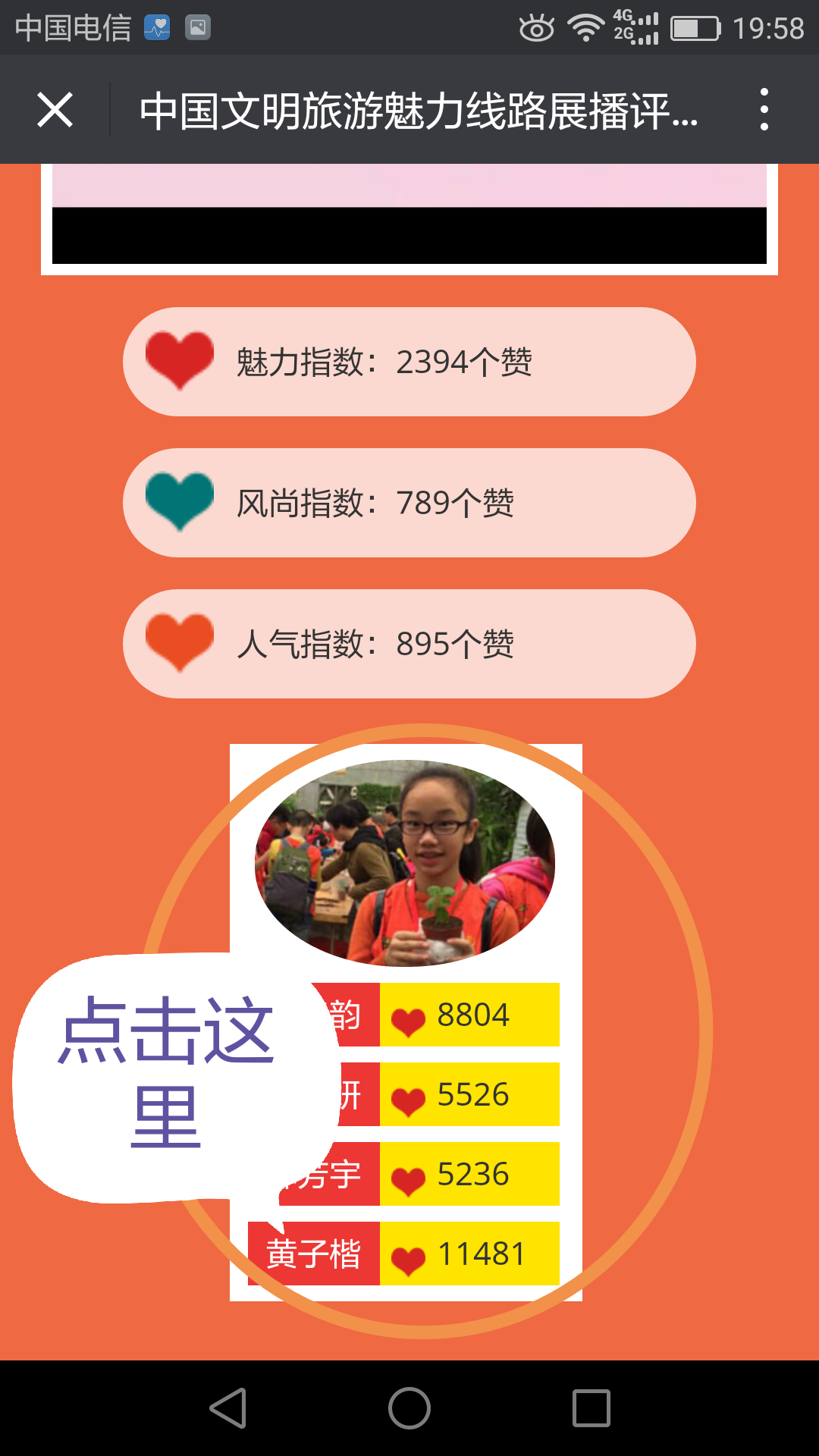 我市龟湖中心小学黄子楷入围“中国文明旅游魅力线路”展播评选及优秀中华小导游评选!请全校师生为其投上宝贵一票。各班主任可将此通知转发班级微信群,发动学生及家长为其投票。投票方式:点击→http://hd.kids21.cn/mlxl/mobile.html,(微信客服端打开),选择福建,点击“视频3”处选手图像,完成投票。(一天可以点赞五次)