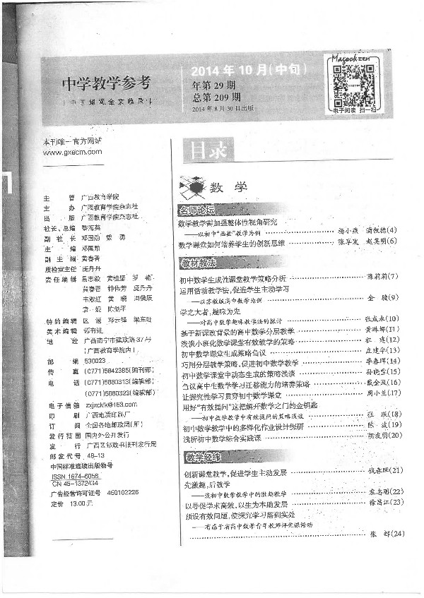高中数学存在性问题解法浅探 李国强 201409