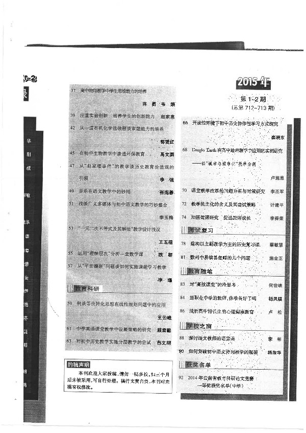 班级管理中的两点心得 李国强 2014