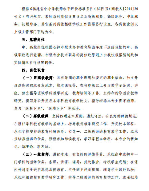 《福建省深化中小学教师职称制度 改革实施方案》及《福建省中小学教师职称评审办法》