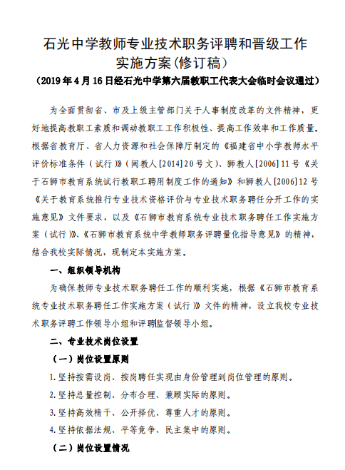职称评聘和晋级工作实施方案(2019416教代会通过稿)