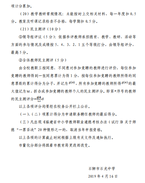 石狮市石光中学教职工奖励性绩效工资考核分配办法(修订稿)