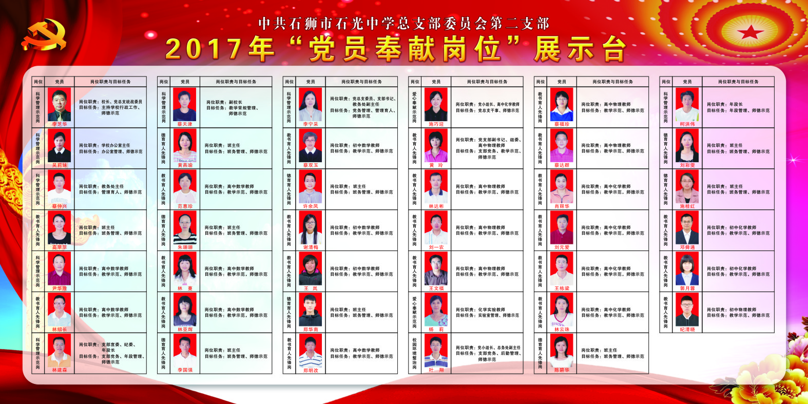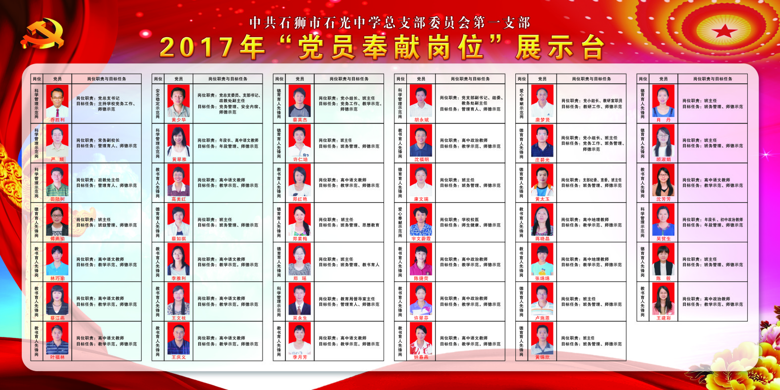 中共石狮市石光中学总支部委员会2017年“党员奉献岗位”展示台
