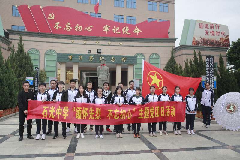 为丰富党团活动,进一步增强党员团员意识,强化政治素养、坚定信念宗旨。清明前夕,石光中学党总支组织部分党员和团干部,在乔胜利书记、许文稽副书记带领下到石狮永宁新四军李子芳烈士纪念馆开展悼念活动,缅怀革命先烈,传承革命精神,接受爱国主义教育。