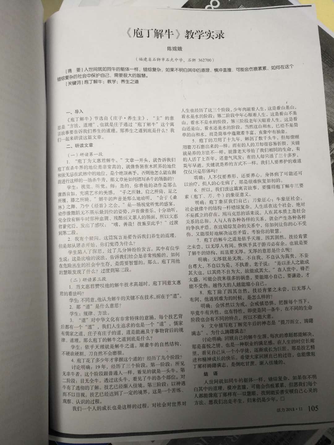 《庖丁解牛》教学实录 陈嫦娥 201811