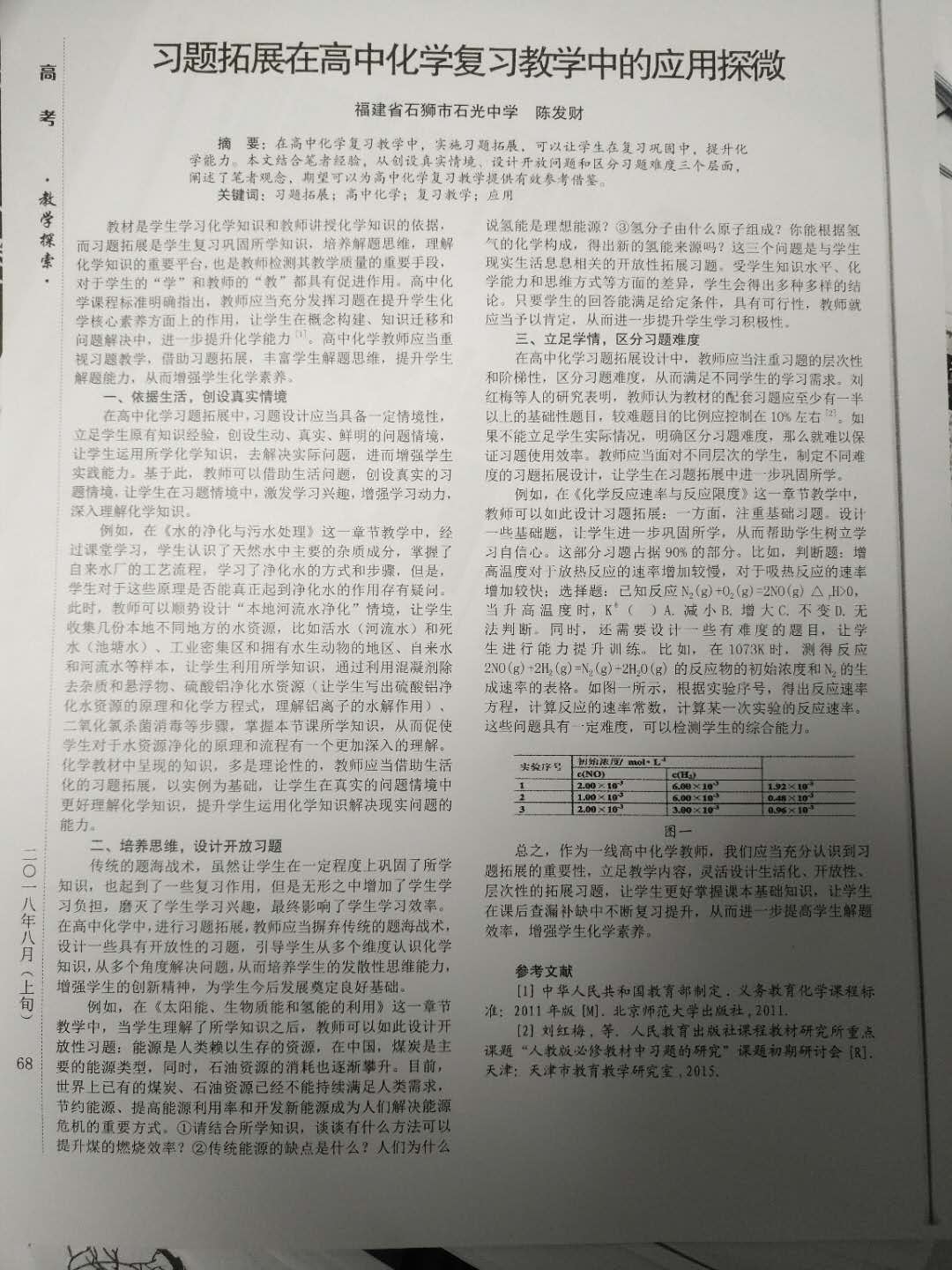 习题拓展在高中化学复习教学中的应用探微 陈发财 201808