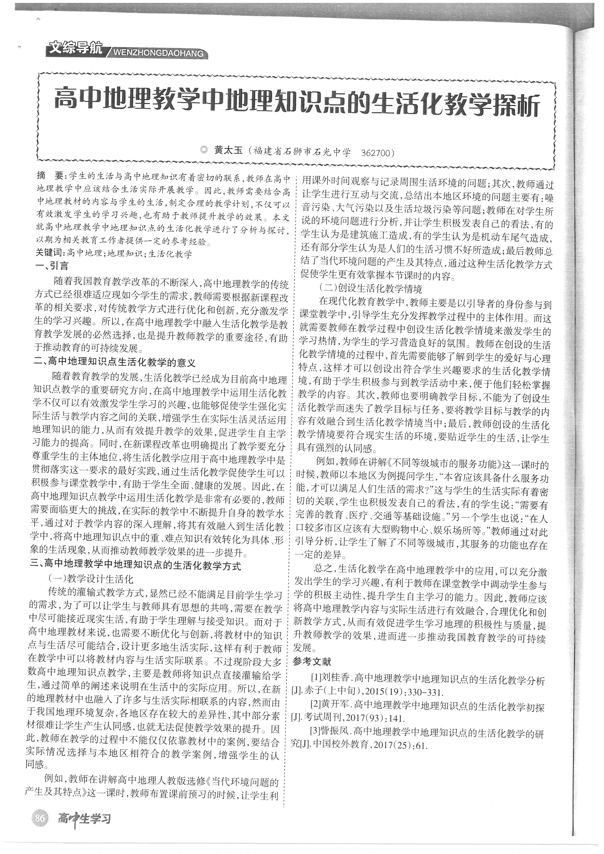 高中地理教学中地理知识点的生活化教学探析 黄太玉 201812