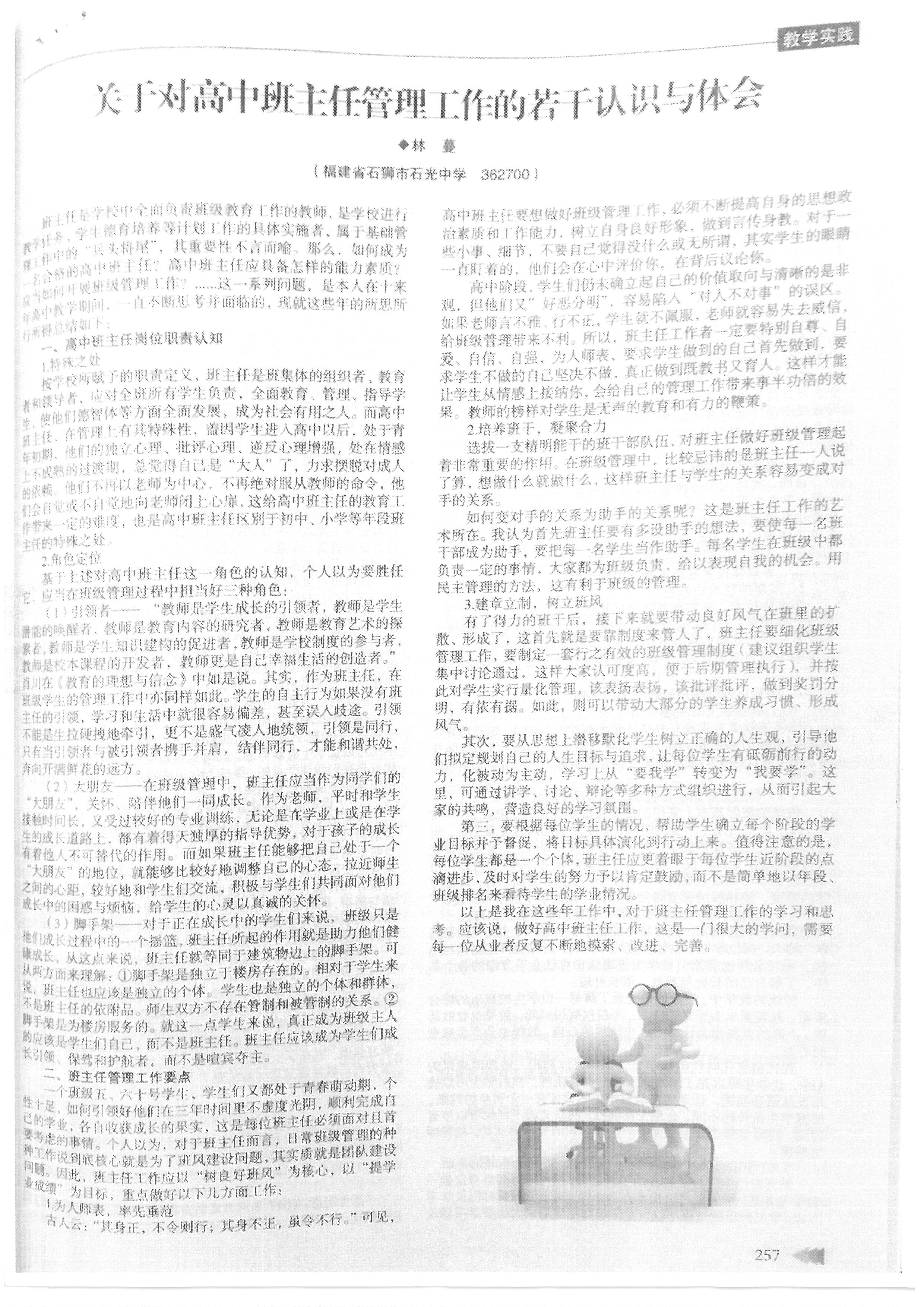 关于对高中班主任管理工作的若干认识与体会