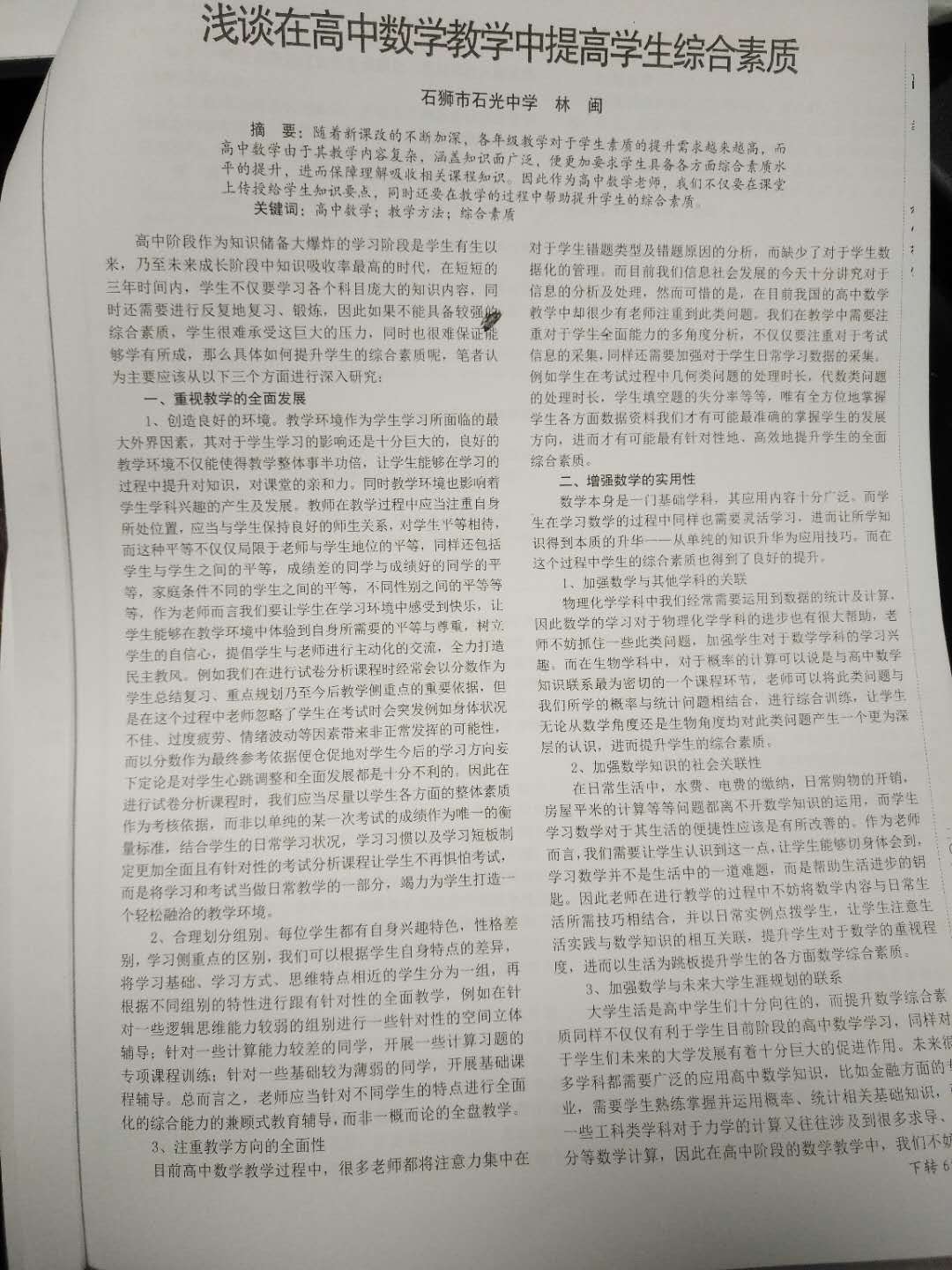 浅谈在高中数学教学中提高学生综合素质 林闽 201811