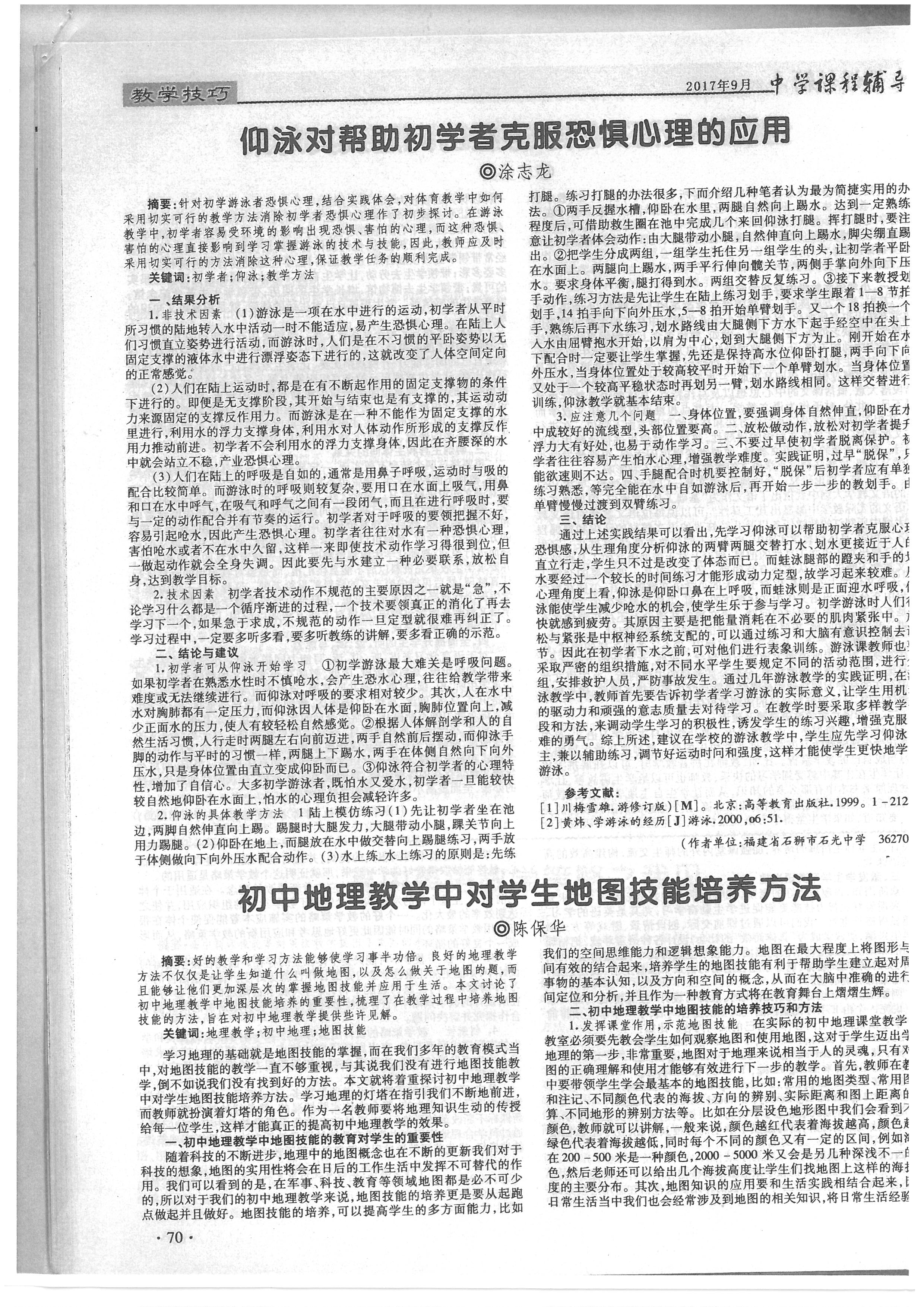 仰泳对帮助初学者克服恐惧心理的应用 涂志龙 201709