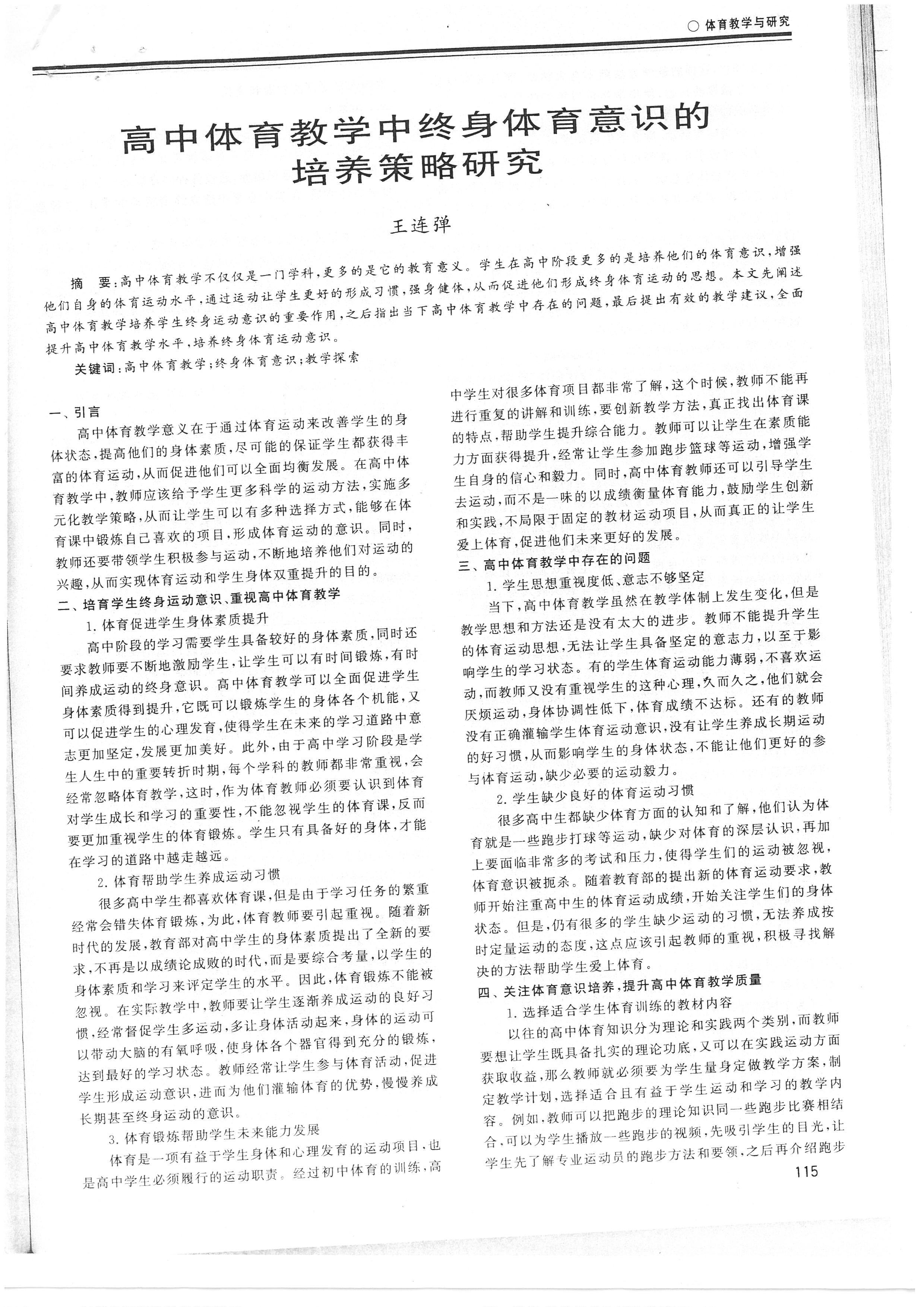 高中体育教学中终身体育意识的培养策略研究 王连弹 201801