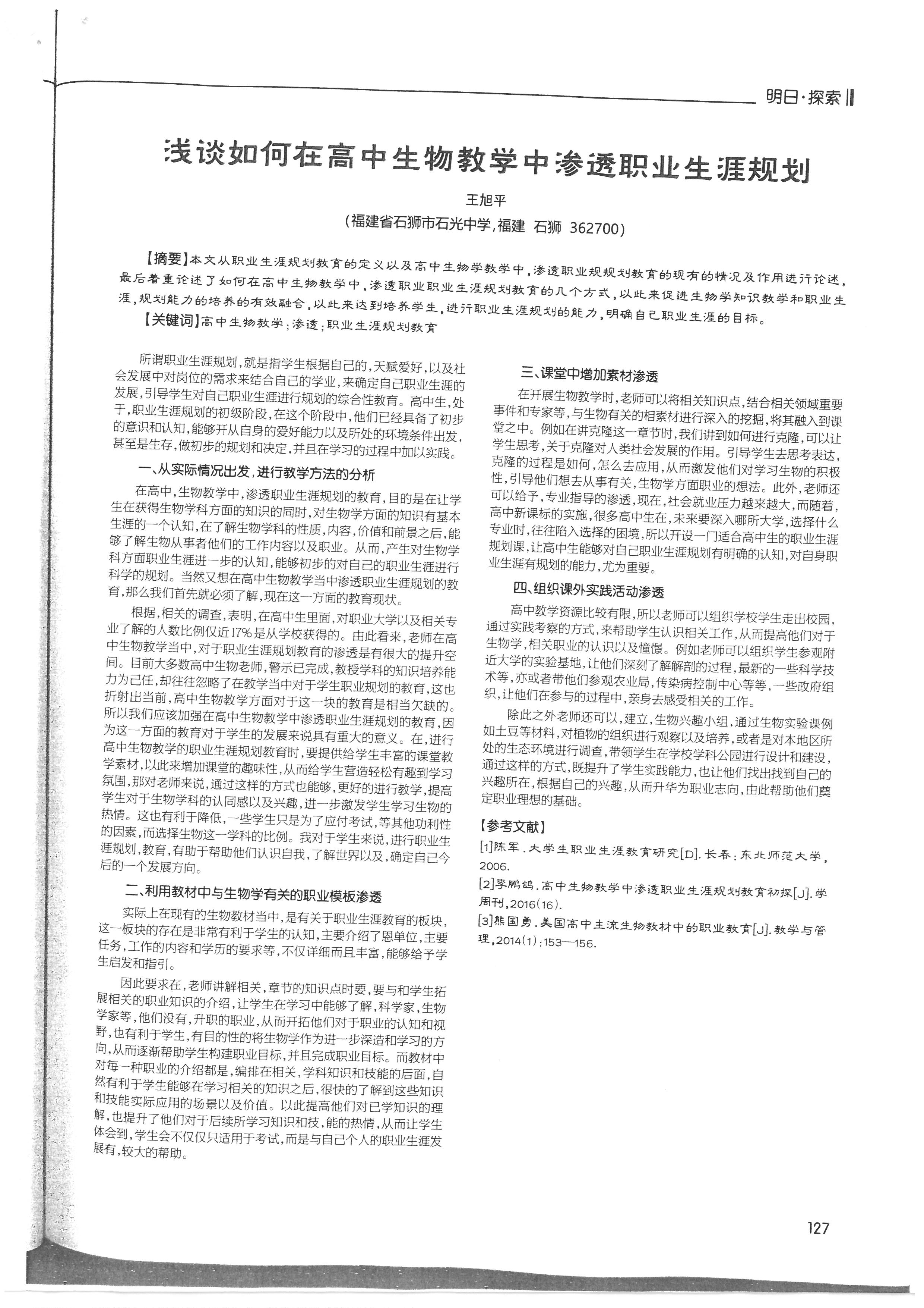 浅谈如何在高中生物教学中渗透职业生涯规划 王旭平 201805