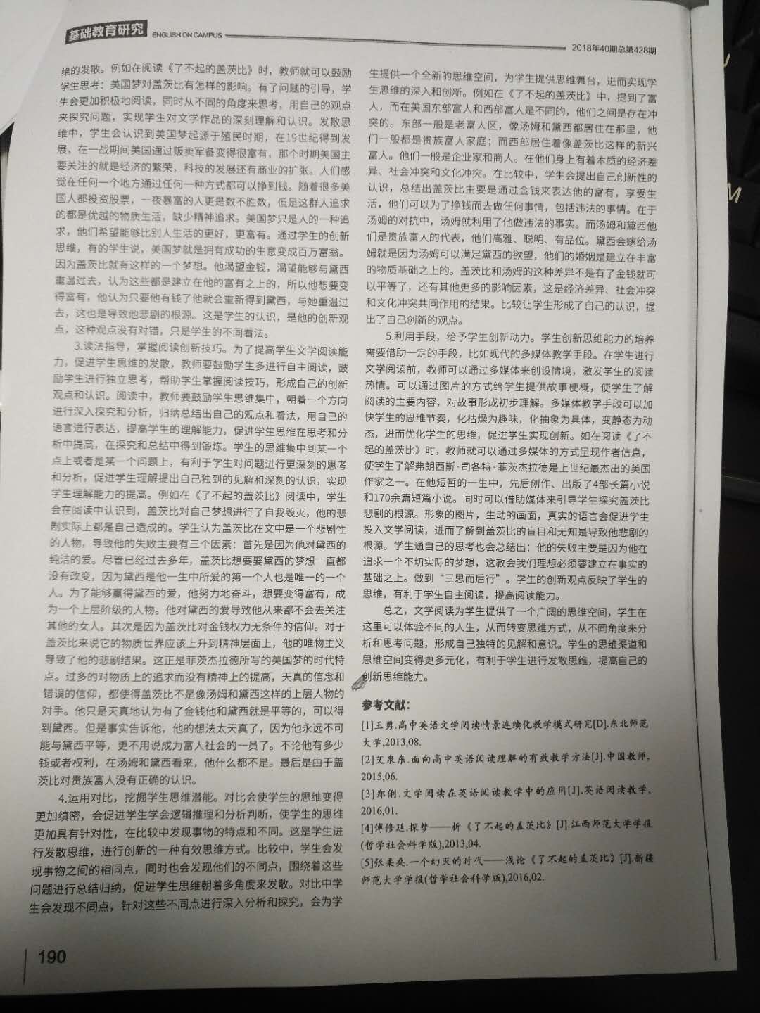 高中英语文学阅读对创新思维影响浅析 许瑛琪 201811