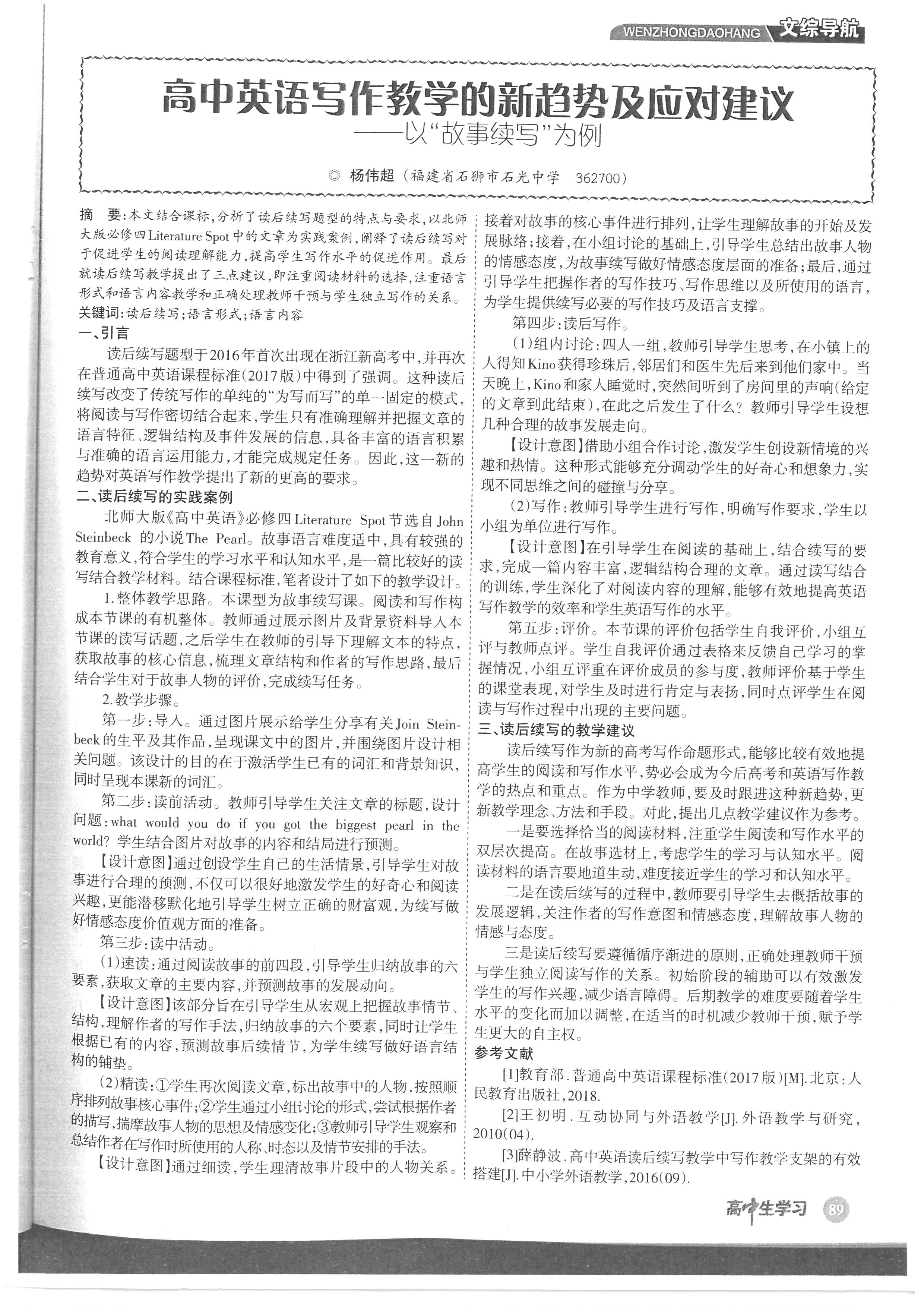 高中英语写作教学的新趋势及应对建议 杨伟超 201812