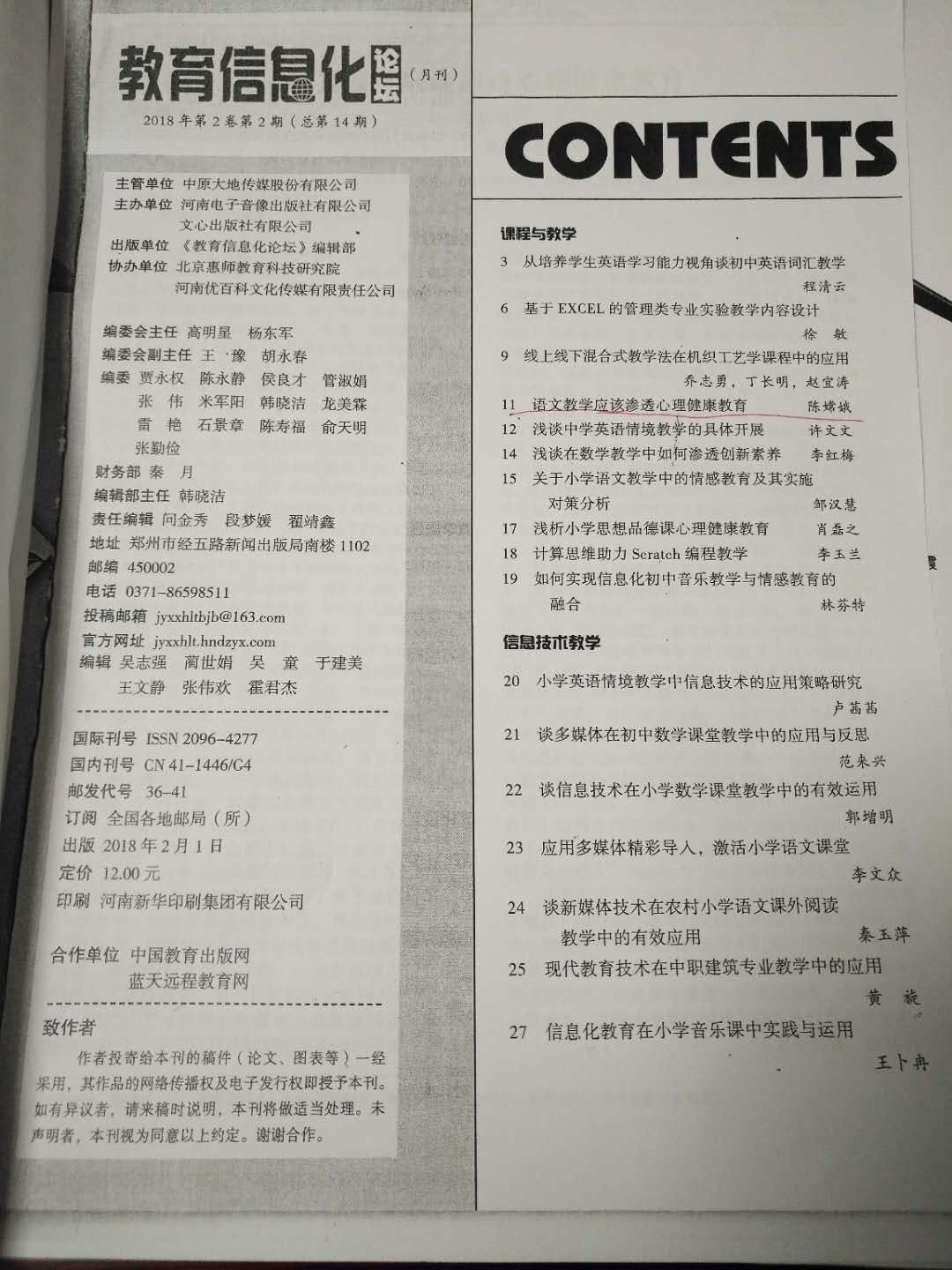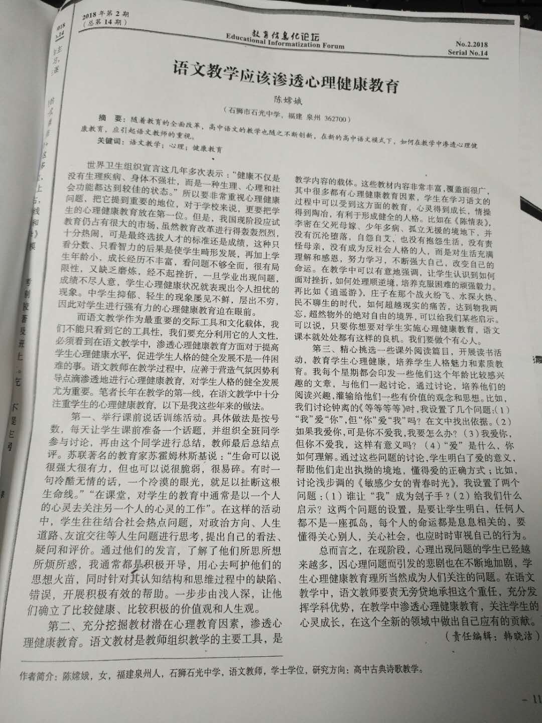 语文教学应该渗透心理健康教育 陈嫦娥 201802