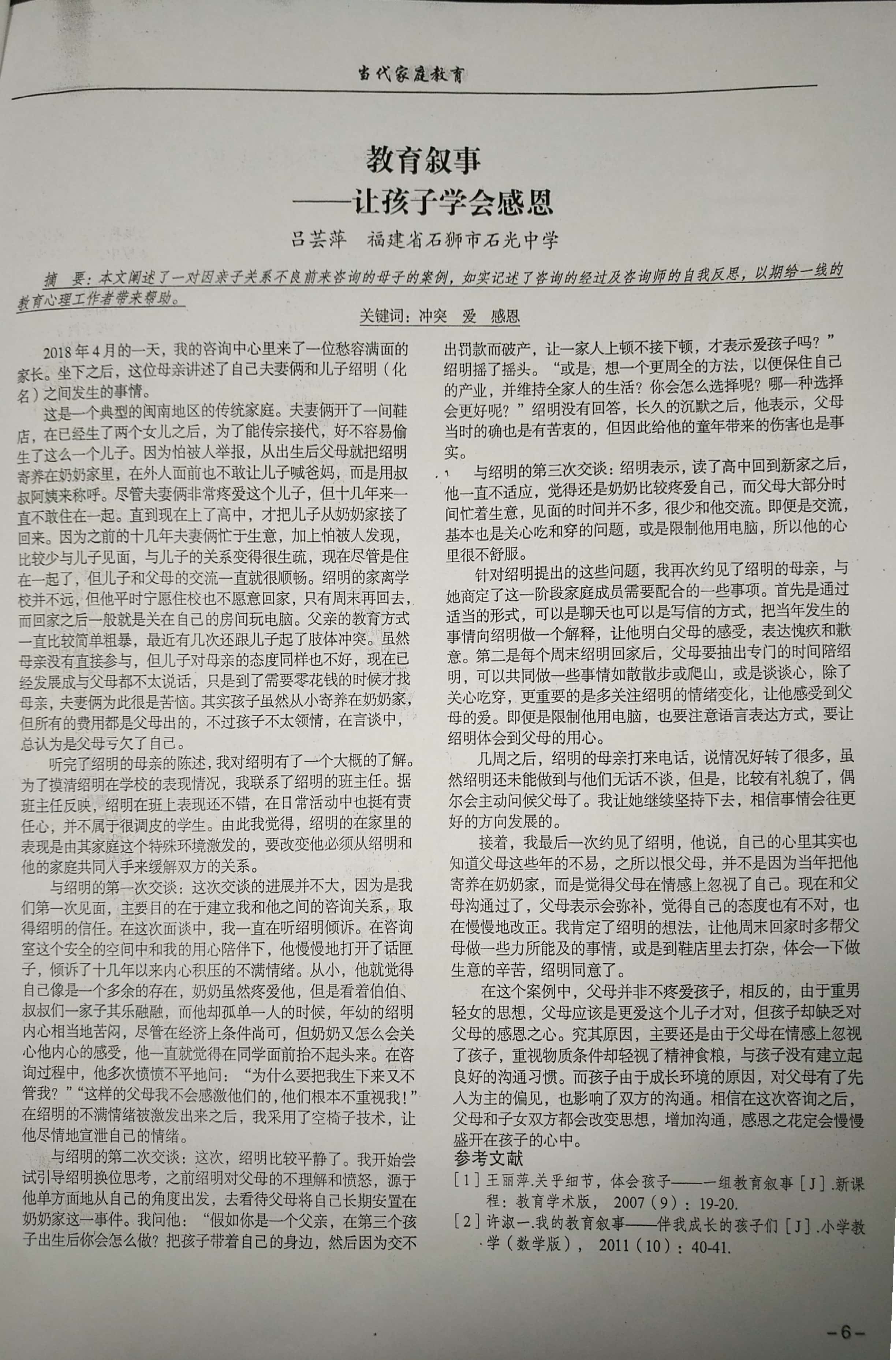教育叙事——让孩子学会感恩 吕芸萍 201803
