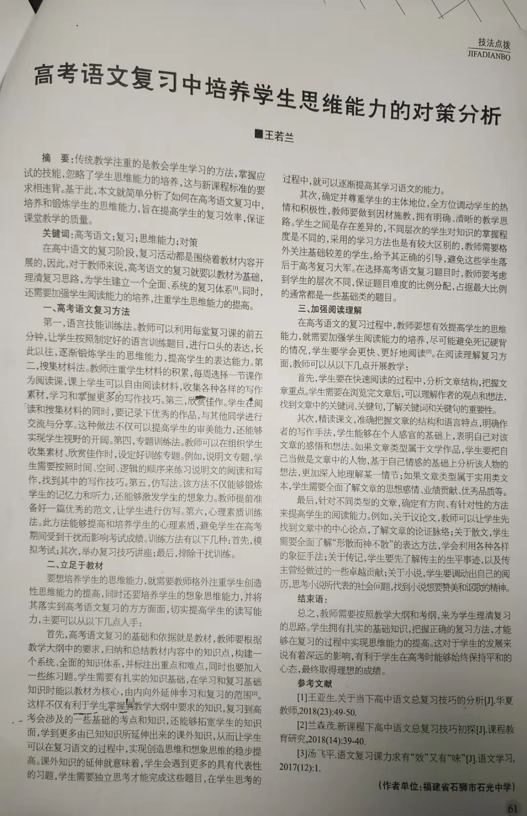 高考语文复习中培养学生思维能力的对策分析 王若兰 201807