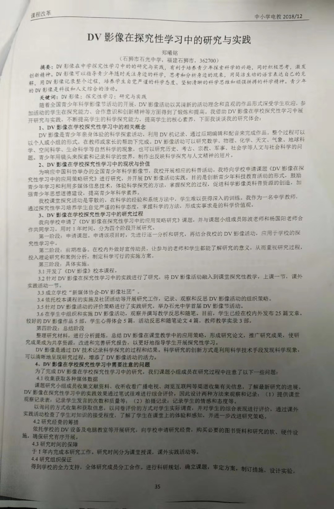 DV影像在探究性学习中的研究与实践 郑曦铭 201812