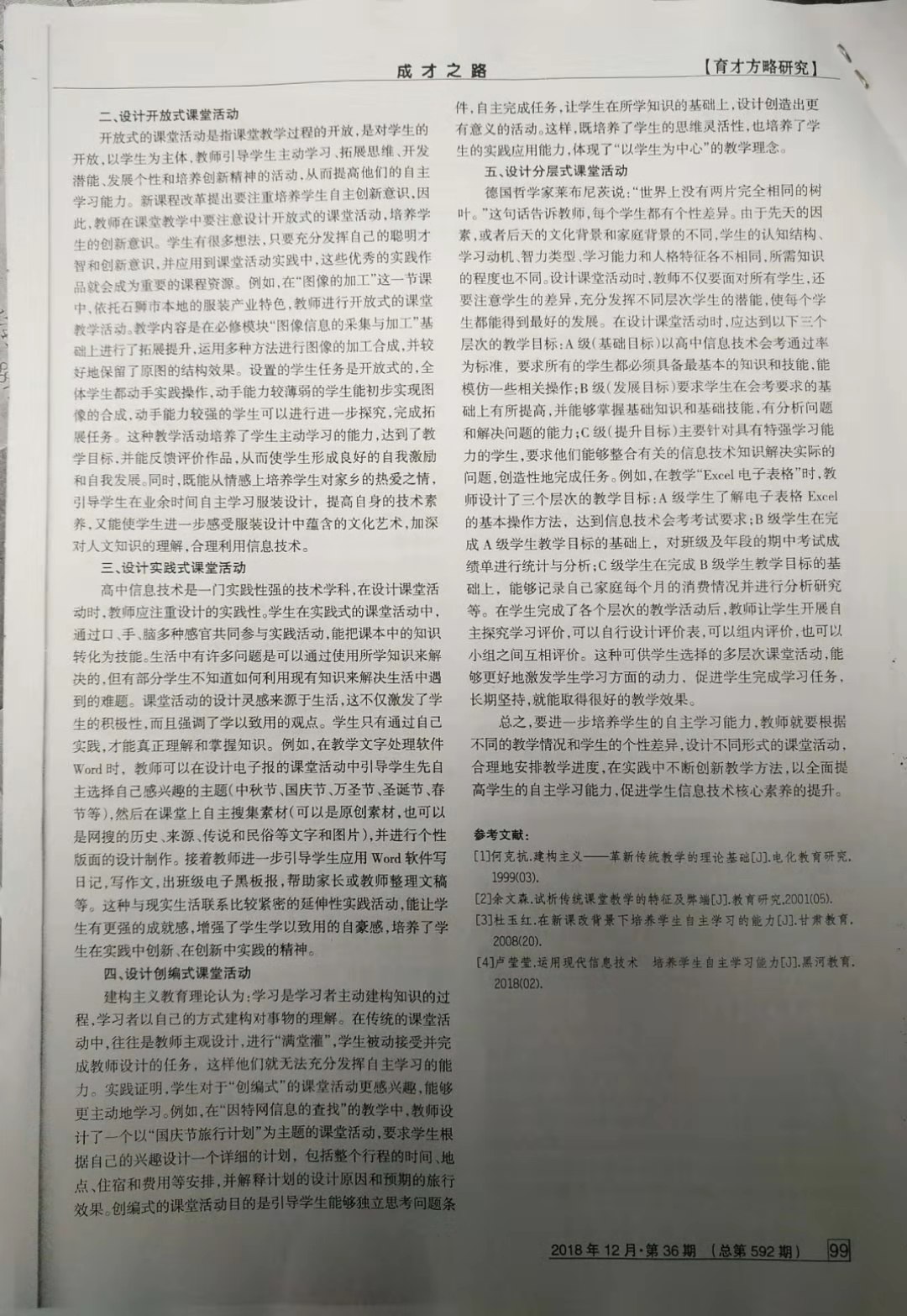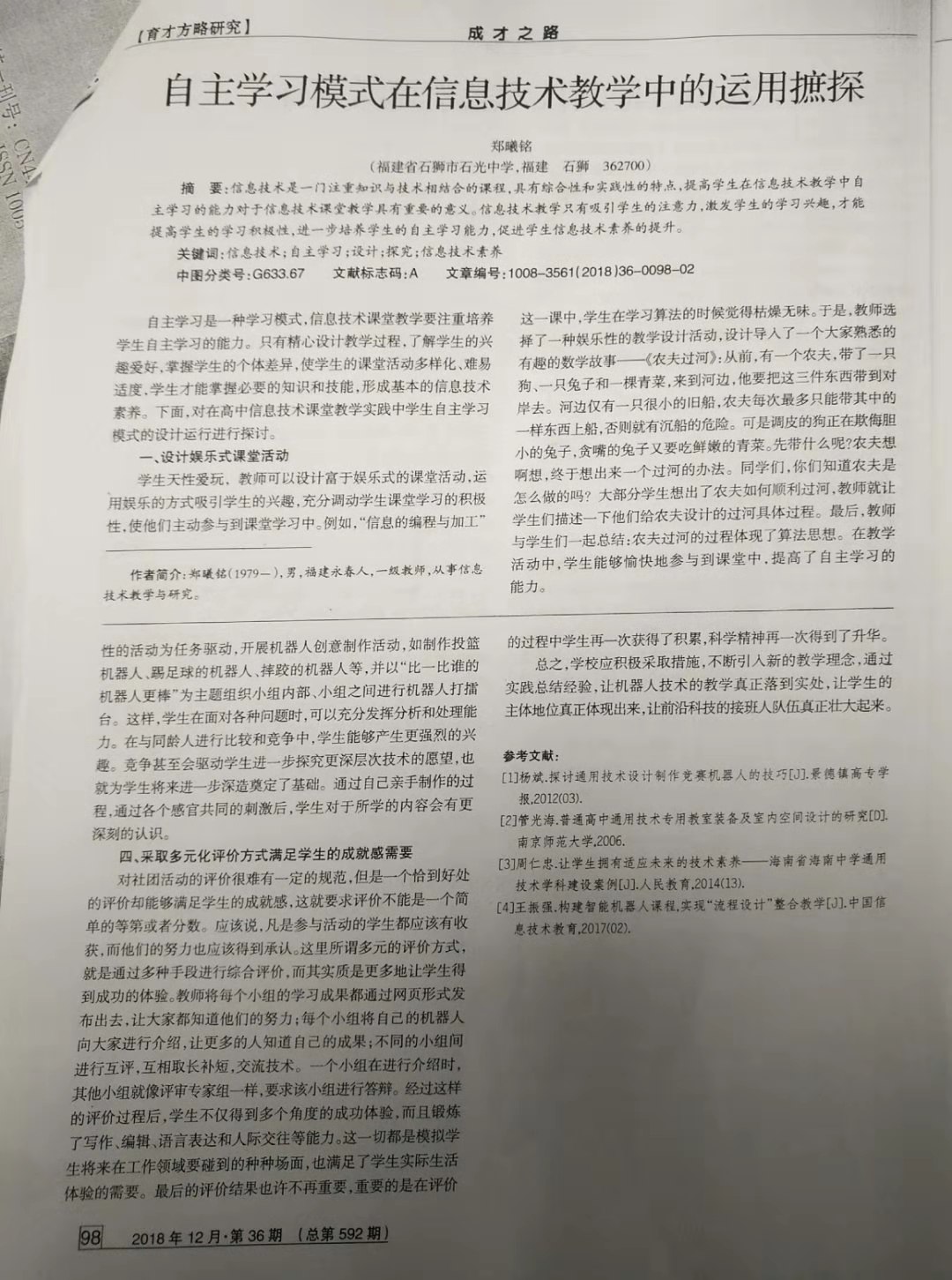 自主学习模式在信息技术教学中的运用摭探 郑曦铭 201812