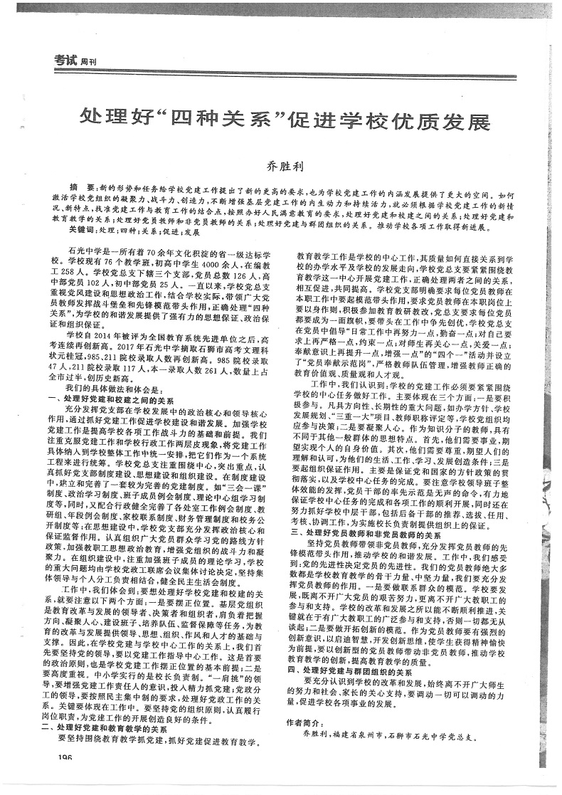 处理好”四种关系“促进学校优质发展 乔胜利 201802