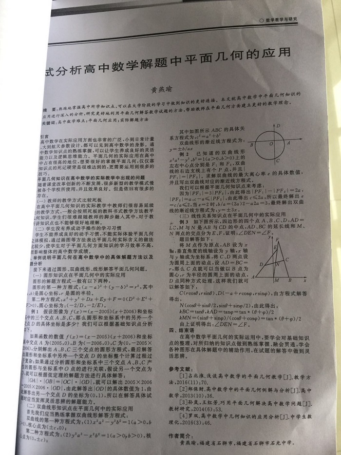 试分析高中数学解题中平面几何的应用 黄燕瑜 201801