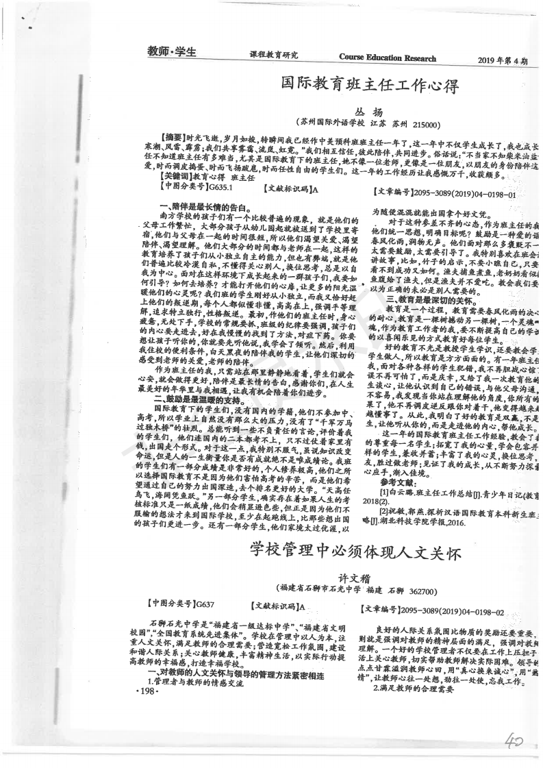 学校管理中必须体现人文关怀 许文稽 201901