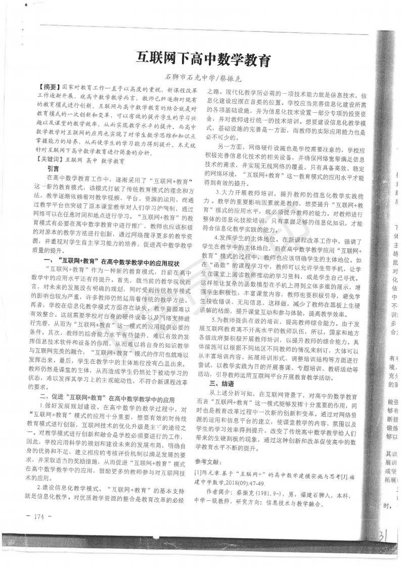互联网下高中数学教育 蔡振克 201902