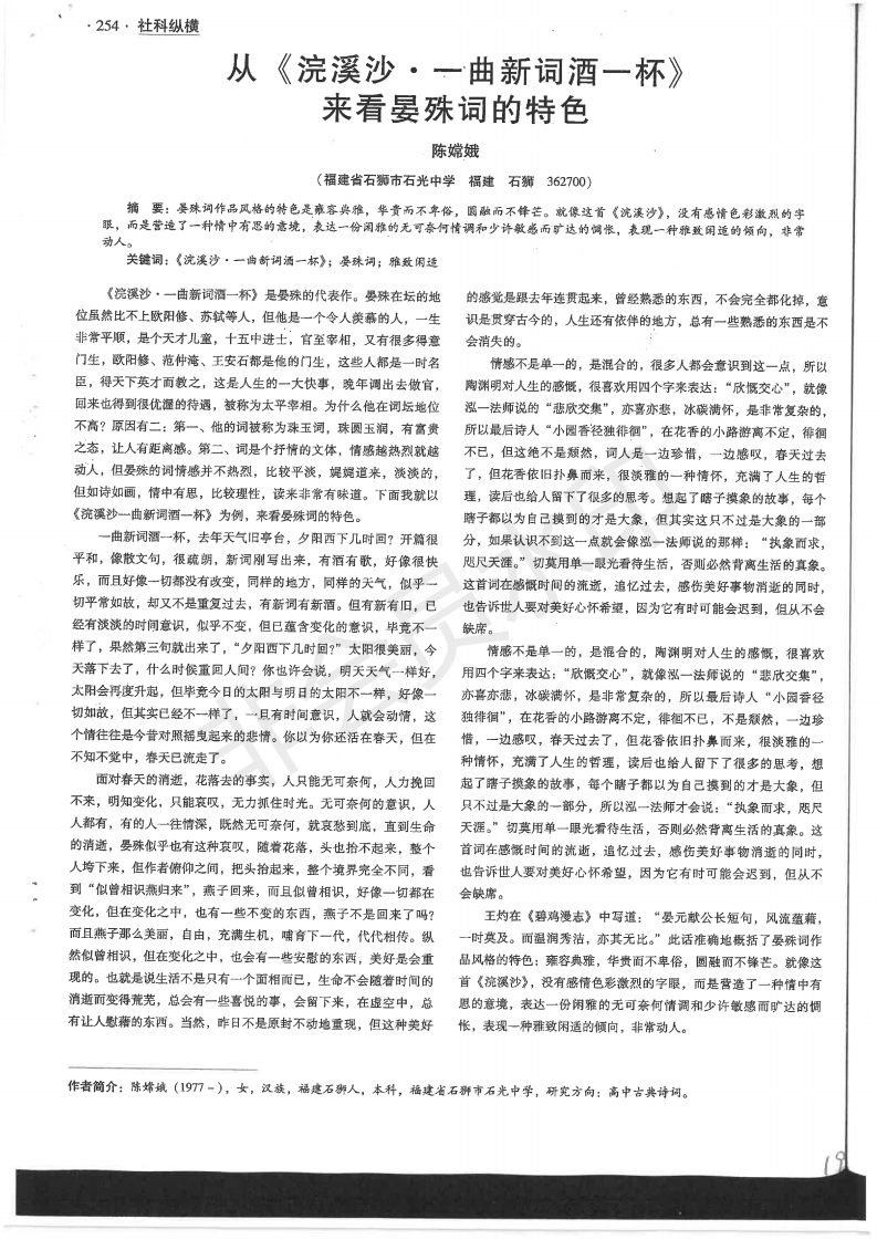 从《浣溪沙·一曲新词酒一杯》来看晏殊词的特色 陈嫦娥 201903