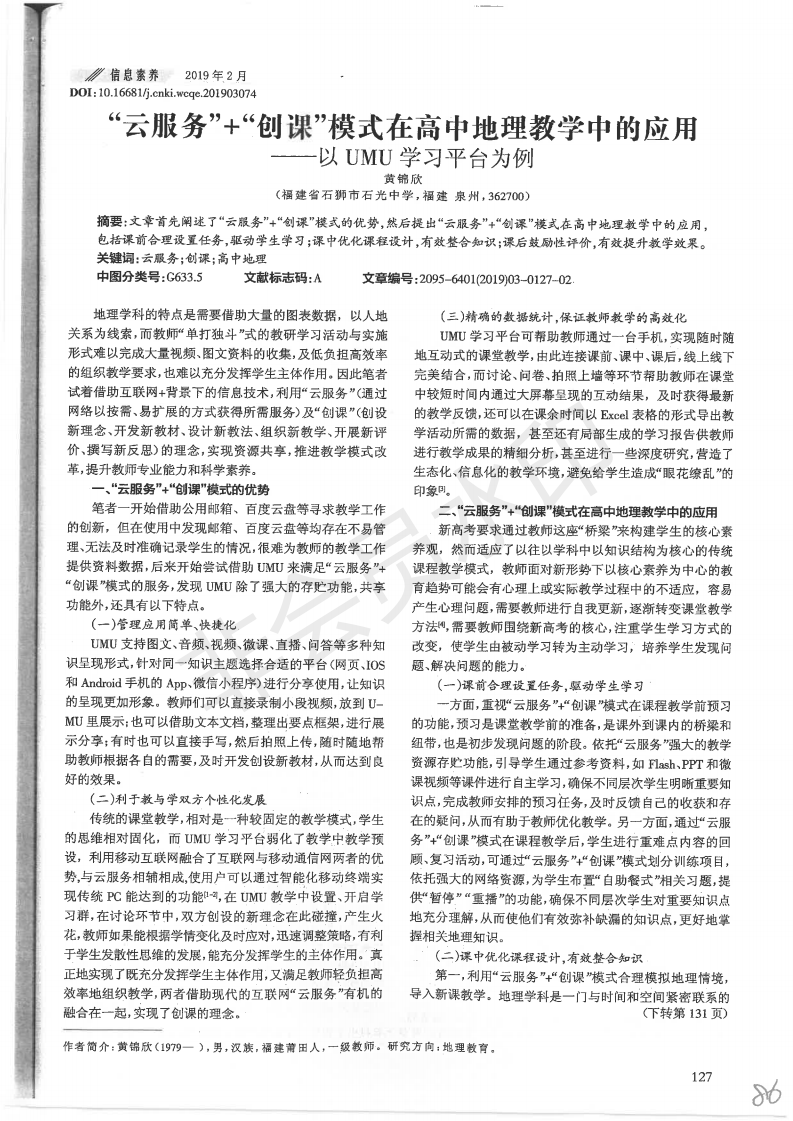 “云服务”+“创课”模式在高中地理教学中的应用——以UMU学习平台为例 黄锦欣 201903