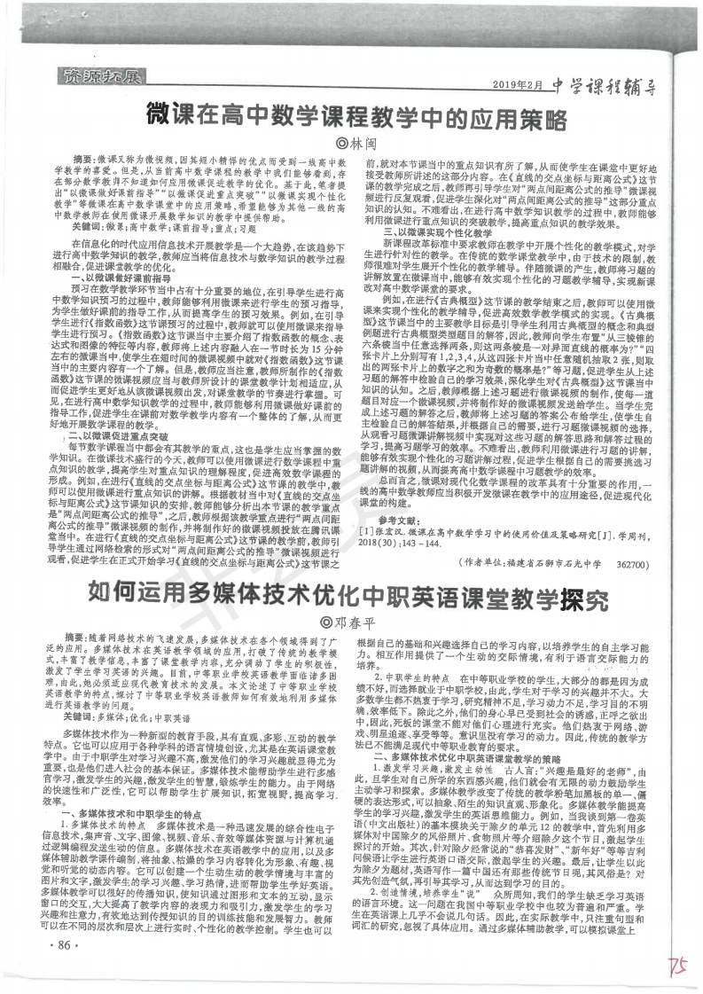 微课在高中数学课程教学中的应用策略 林闽 201902