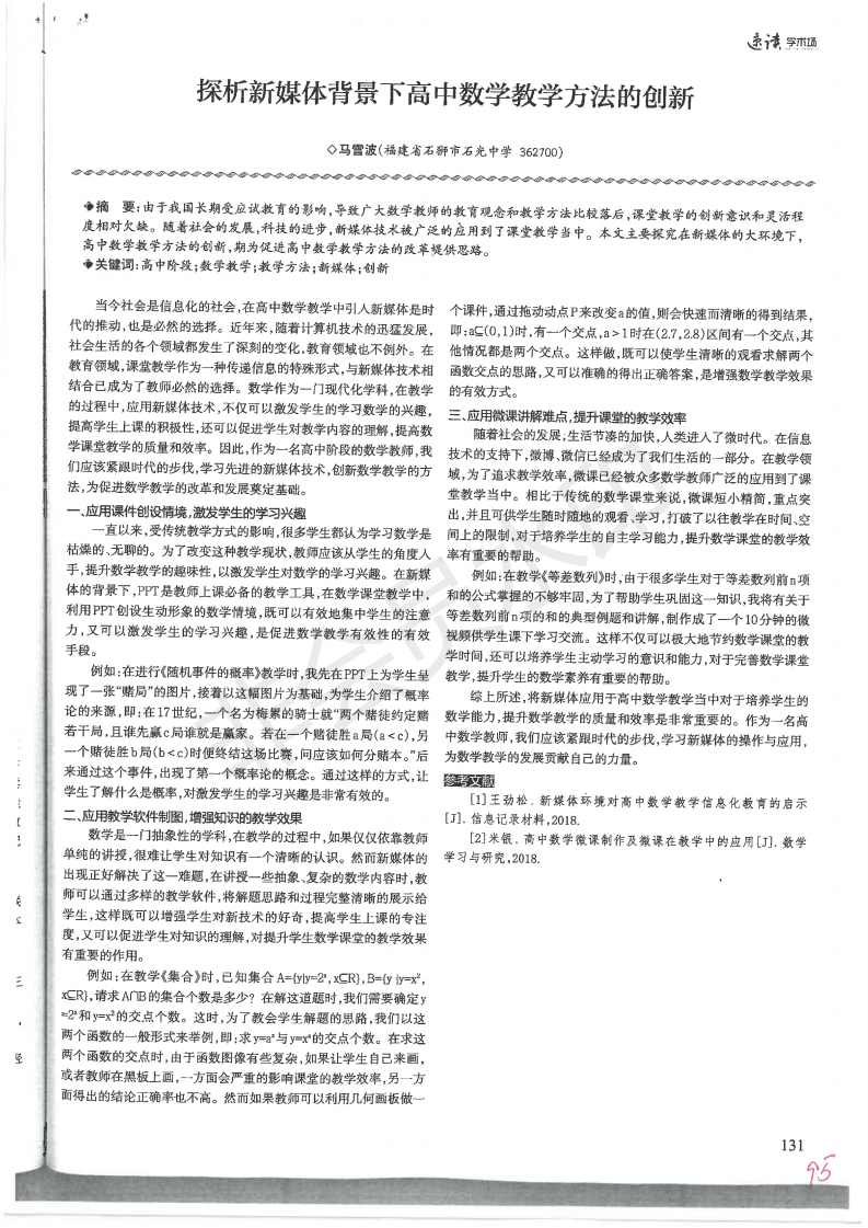 探析新媒体背景下高考数学教学方法的创新 马雪波 201902