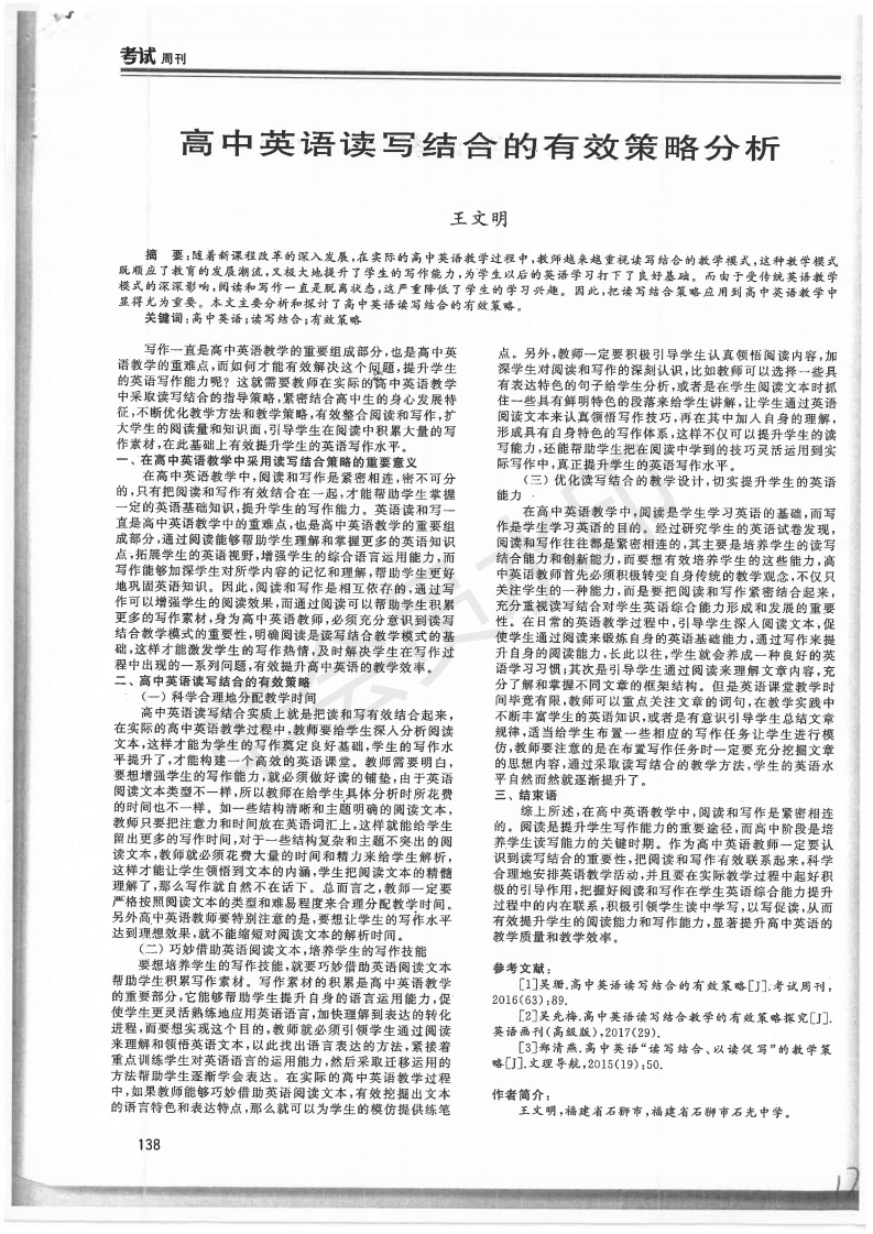 高中英语读写结合的有效策略分析 王文明 201903