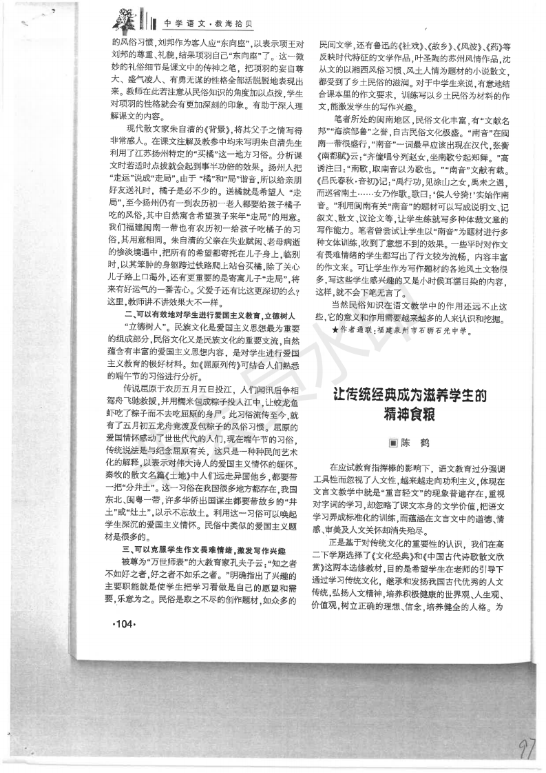 民俗文化知识对培养语文核心素养的作用和意义 叶福林 201902