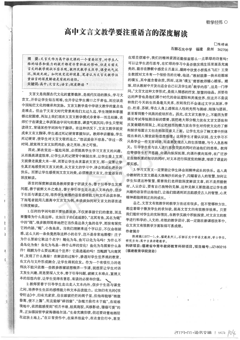 高中文言文教学要注重语言的深度解读 陈嫦娥 201901