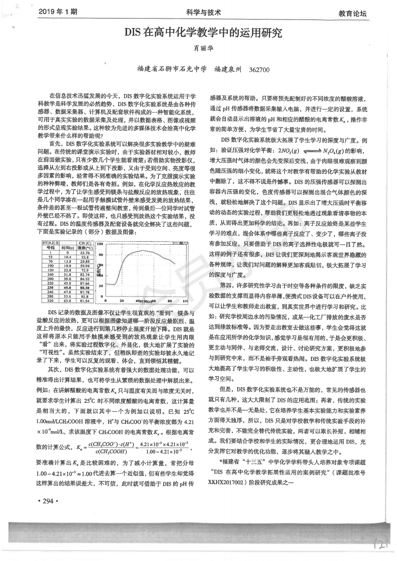 DIS在高中化学教学中的运用探究 肖丽华 201901