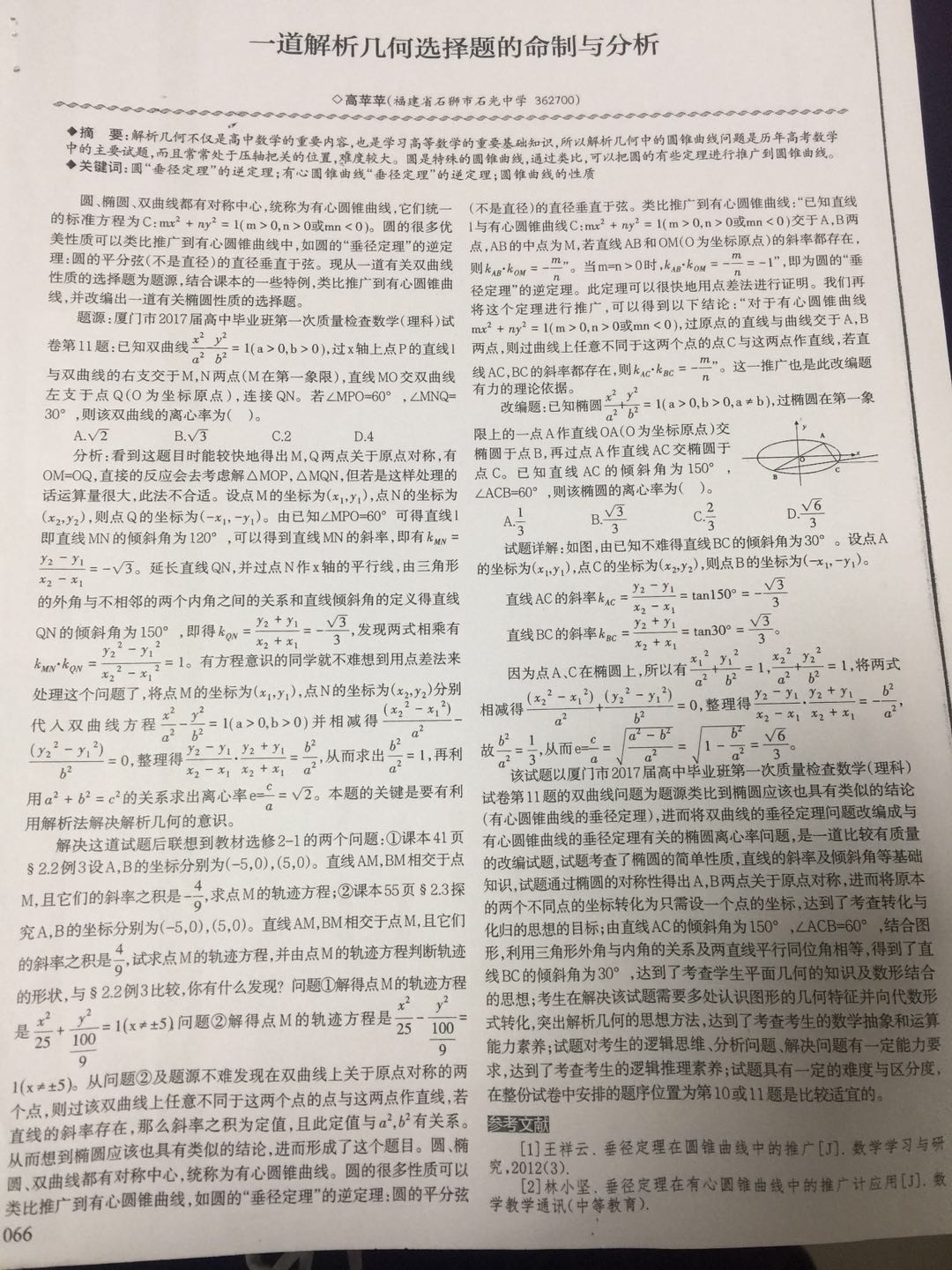 一道解析几何选择题的命制与分析 高苹苹 201902